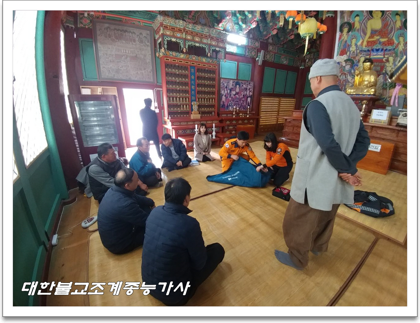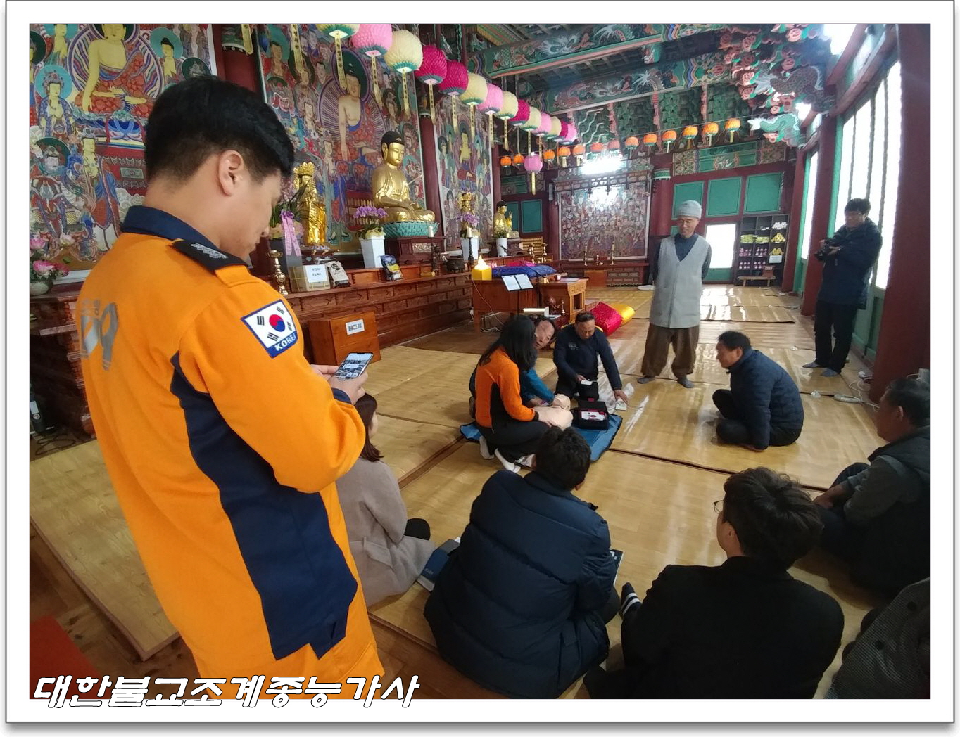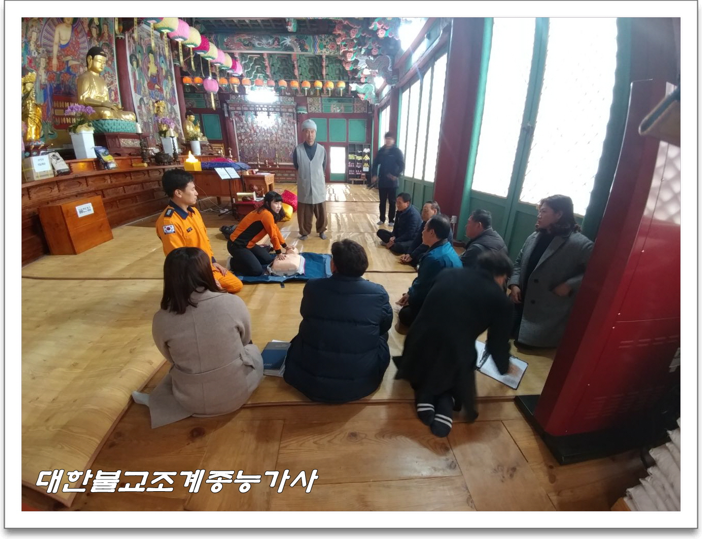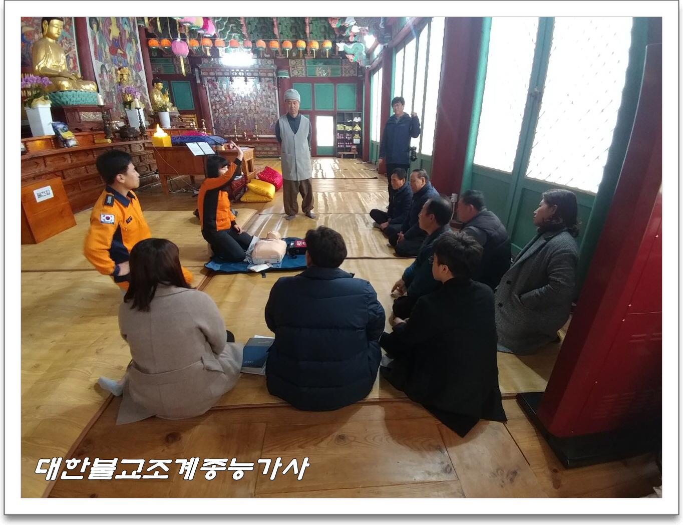 군청 소방청 관계자분들과 능가사 사부대중 합동으로 소방훈련을 실시하고 심폐소생 훈련 및 실습 시간을 가졌습니다.